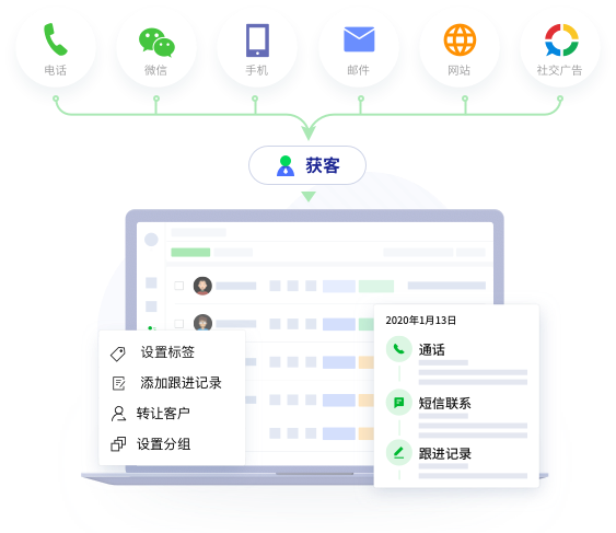 EC打通了微信、电话、QQ、小程序、社交广告等工具。在客户资源的统一入库和管理上,通过EC,澳玛美容的销售人员能够直接将QQ、Excel表格、名片里等多渠道获取的用户信息导入EC系统,建立云端化的统一客户池,实现商机统一管理与分配流转,销售间产生的客户重复跟进和争单的问题得以解决。